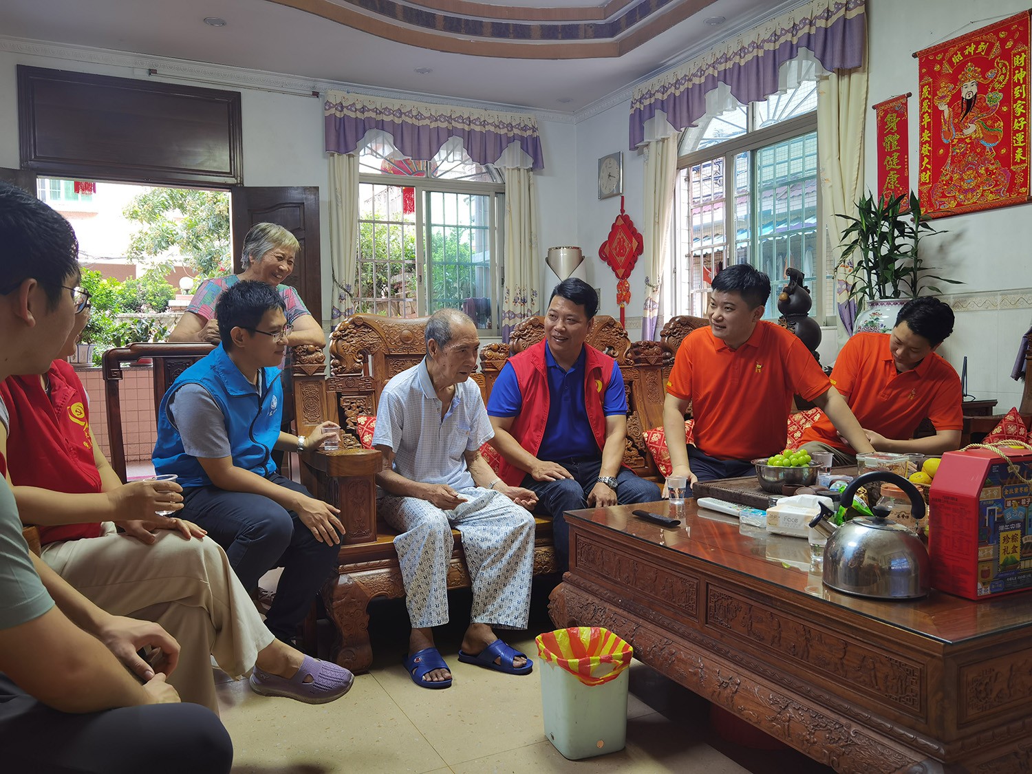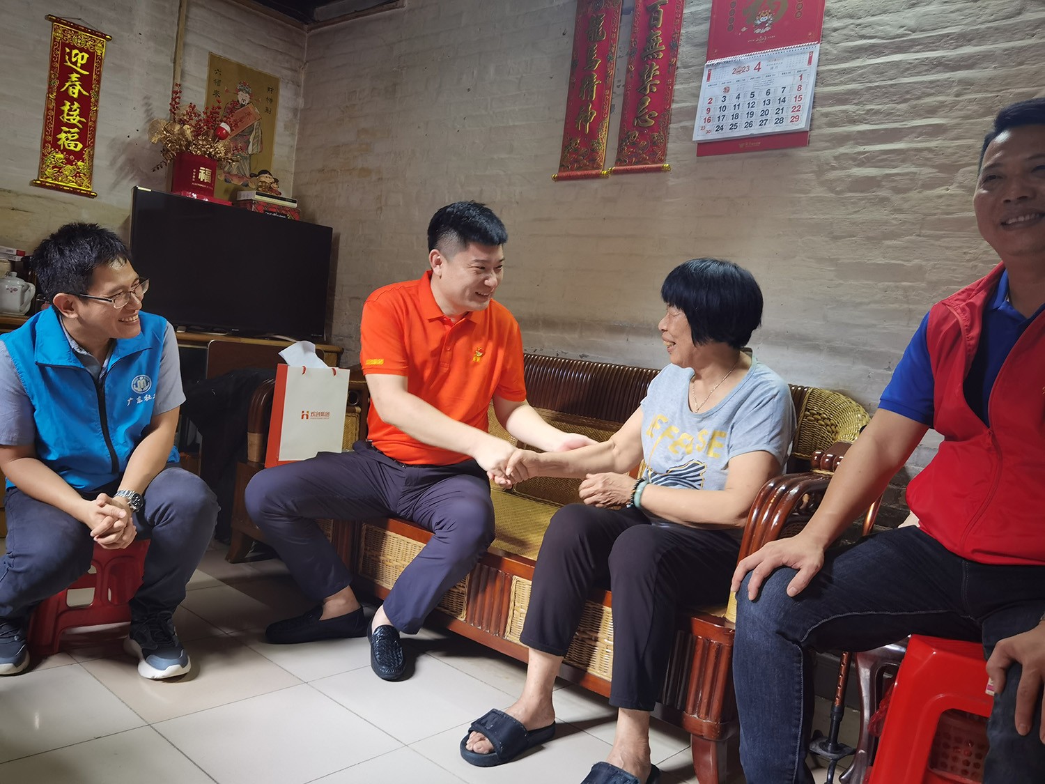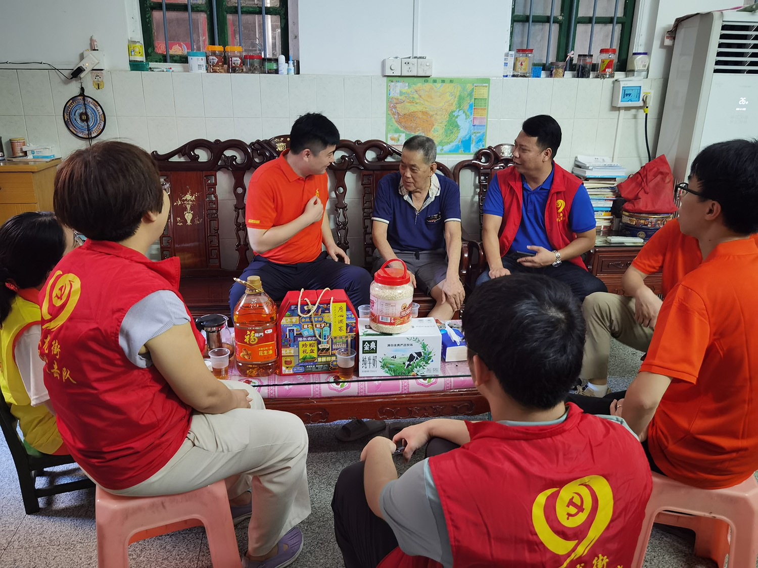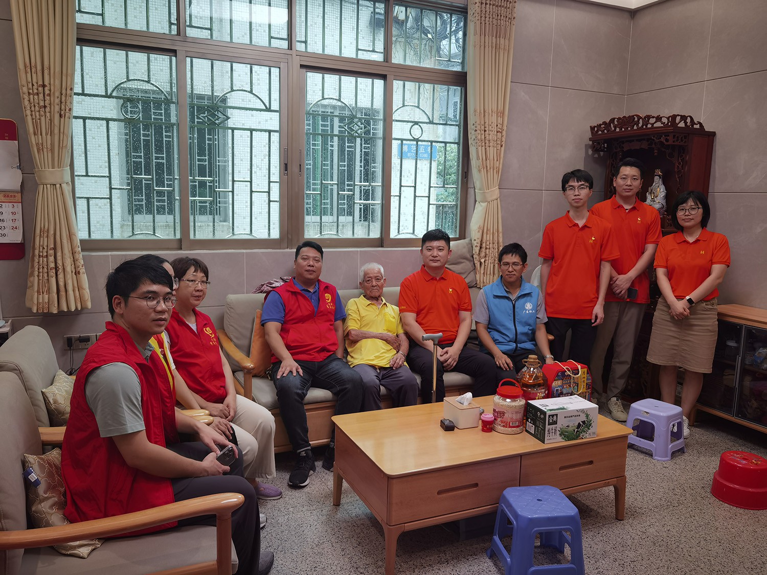 6月20日下午,活動統籌人周雁玲、黨員蘇澤彬、黃旭、周超與沙涌村黨支部成員、大龍街社工站成員,一同深入大龍街沙涌村入戶探訪老黨員,向他們致以端午節日的問候并送上生活用品一批。