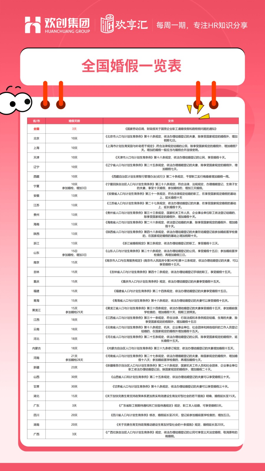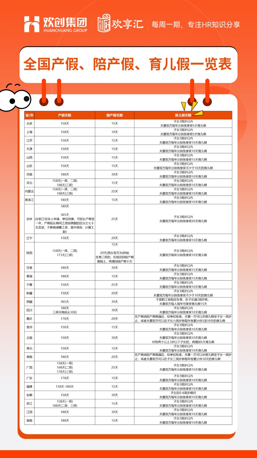 歡享匯 | 2026最新!全國31省婚假/產假/育兒假/獨生子女假一覽表