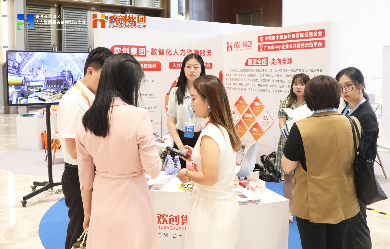 10月11日,首屆粵港澳大灣區人力資源服務創新創業大賽決賽在廣州白云國際會議中心盛大舉行,大會由廣東省人力資源和社會保障廳、廣州市人民政府主辦。此次盛會匯聚了來自粵港澳大灣區及多個地區的人力資源服務機構、知名企業、專家學者,凝聚行業智慧與創新力量,共同構建一個高端的展示與交流平臺。歡創集團受邀作為供需對接參展商,亮相核心產品和創新成果,受到了眾多來賓的關注。