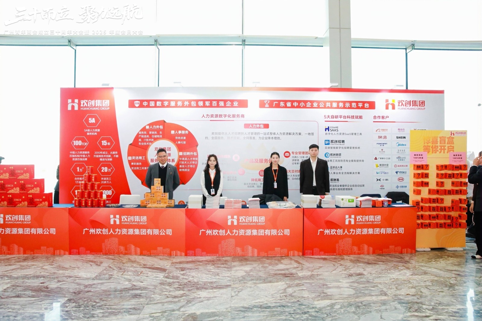 2025年12月27日,以“三十而立·聚力遠航”為主題的廣州青年商會成立三十周年大會暨2025年度會員大會在廣州保利洲際酒店隆重舉行。本次盛會匯聚政府領導、行業協會代表、企業嘉賓及會員單位等900余人,共同回顧商會三十載奮斗歷程,展望新時代合作愿景。作為商會會長單位、首席合作伙伴,歡創集團受邀出席并設獨立展位,全面展示企業創新成果與服務理念,成為現場焦點。